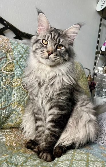 PITARACOON Cattery started breeding Maine Coons in 2015 in the lovely Sonoran Desert of Arizona. Over the past decade, we have provided the highest quality kittens to their future loving families. At PITARACOON Cattery we are committed to ethical breeding practices and our Breeding Philosophy is simple, we prioritize the health and happiness of our Maine Coons over everything else. We use our many years of experience understanding color markings and patterns to breed Kings and Queens that will produce Black and Blue Smokes, as well as, Classic, Mackernel & Ticked, Blue, Black and Silver tabbys. We are also very pleased to have strong Polydactyl genes in our stock so many of our kittens are blessed with extra toes on all their little feet.